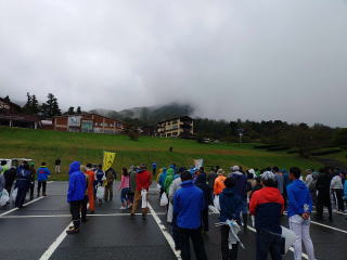 始まる30分ほど前は、雨が降り、カミナリゴロゴロ。霧もかかって、こりゃ無理かなと思いながら参加者を待ちました。たぶん誰も来ないだろうなと思いつつ・・。