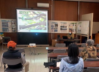 シジュウカラの地鳴きについて解説中 写真・音声ファイルの準備+講師役、ご苦労様でした