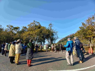 当日は風もなく、日差しもそれほど強くはなく絶好の探鳥会日和です。キャンプ場には10台の車が入っていたのですが、11/16に下見に来たときは5台だったので天候が良いとやはり人出もそれなりに多くなります。