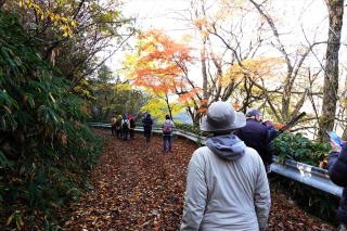 しあわせの郷を散策開始。 一列になって散策コースを進みます。