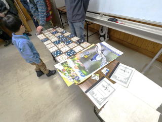 さて、講習会を終了したあとはプレゼントタイム。まずは西部のメンバーが水鳥公園で作成した缶バッジを全員(?)がいただきました。次は、各自が引いたクジに記された番号の小さい人から順に、事務局に用意してもらった景品の中から自由に選ぶというシステム。景品は会員の手作りのリース、お菓子、その他など様々。