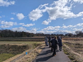 今日は晴れて、暖かい1日になりました。参加者は16人。探鳥会が初めての方や県外からの参加がありました。相変わらず女性が多いです。あと一ヶ月もすると、しだれ桜が満開になる道沿いを進み、散策コースに入ります。