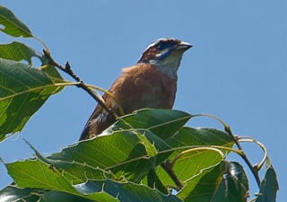 ハンゲショウの群落地付近では、間近でサンコウチョウの声、遠くからカッコウの声も聞こえました。咲き始めのハンゲショウをじっくり観察してから来た道を引き返します。駐車場まで戻るとホオジロの声が出迎えてくれ、近くの樹上で鳴いているのをスコープで見ることができました。