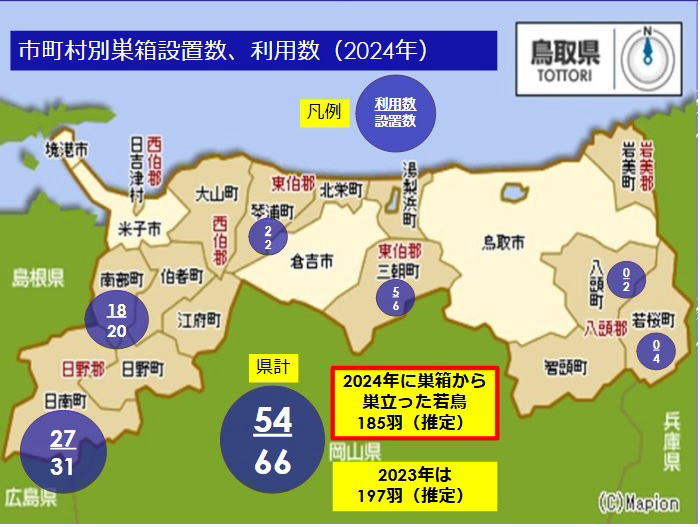 (参考資料)・当支部による県内各市町村別ブッポウソウ用巣箱の設置数・利用数(2024年)