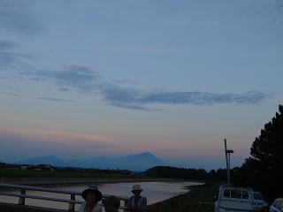 福岡池の堤防に上って 大山を眺めながら