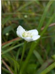 レストハウスの軒下に幟を立てて受付を始めると、常連さんは慣れたもので、雨具を着て総勢14人が集まりました。この時期、ここでしか見られないウメバチソウから観察会をスタートしました。雨の中、自然学習歩道林床には名前不明のキノコがニョキニョキとでています。猛毒のカエンダケも見つけました。