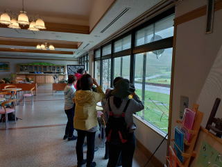 聞こえる声や飛び方・止まり方の特徴、図鑑ではなかなか知りえない行動のエピソードも聞いていて楽しいものです。人間より双眼鏡・スコープが濡れることを心配しましたが、雨が強くなったのは、軒下での鳥合わせの時。