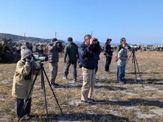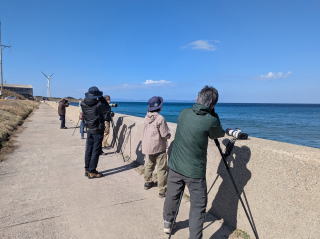 本来ですと、岬の先端部まで進みたいところですが、歩くだけでも体力を消耗する上に時間もかかるため、残念ながら途中で引き返しました。駐車場に帰り着いて鳥合わせしたところ、なんとか35種までリストアップできました。昨年の44種には及びませんが、この条件では上出来ではないでしょうか。皆さんお疲れ様でした。