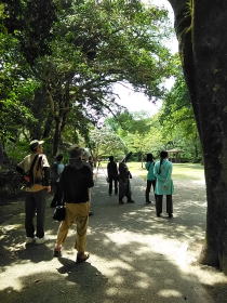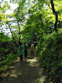 しあわせの郷を散策開始。 一列になって散策コースを進みます。