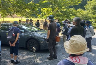7月は恒例の日南町でのブッポウソウ巣箱観察会でした。早々と梅雨が明けたと思ったら酷暑が始まりましたので、熱中症対策も考えないといけません。道の駅「にちなん日野川の郷」に集まったのは15人(会員11人、会員でない人4人)、車は約10台。