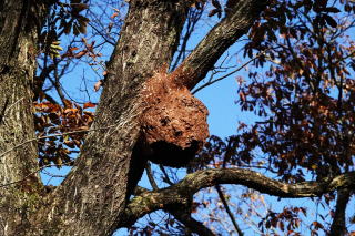 途中スズメバチの巣らしきものを発見、用心しながら近くまで行くと半分こわれており、空き家状態だったので一安心。実はもっと気がかりだったのはクマさんです。11/21に自宅の近くでクマの目撃情報があった為、山の中ならなおさら、とかなり神経を集中して周囲に気を配っていたが杞憂に終わって良かったです。