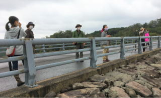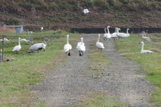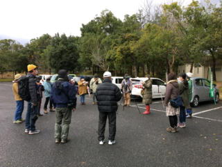 ・十二月探鳥会の報告 (2020/12/31) 東部 12/6 池と海の水鳥観察 9hに福部町総合支所に10名(非会員2名)が集合、さっそく本庄池へと移動。カモたちに気づかれないようにそっと堤に近寄るが、彼らは気配を察して徐々に池の奥に移動。やはり双眼鏡では無理で、結局は昨年同様にスコープで見るしかありませんでした。今年はトモエガモがやたらと多く、約500羽のカモのうちの約200がトモエでした。残りの多くはマガモ。コガモやオナガガモ、オカヨシガモも混じっていました。 ![]() 堤の上は地雷(イノシシのフン)だらけ! 解像度不足ですが、オオタカ幼鳥です 続いて、網代港に移動。さっそく、遠くの枯木にタカ類二羽を発見。シルエットからハヤブサのよう。続いて、もっと近くの枯木に停まっているオオタカ幼鳥を見つける。するともう一羽のオオタカが上空に現れ、盛んに枯木のタカにモビング(攻撃行動)を仕掛ける。しかし、停まっている幼鳥はあまり気にしていない様子。時期的に見て、親が子に独り立ちを促す「子別れ行動」のようでした。 その間にも港の岸壁にウミネコが続々と飛来するが、他のカモメ類は見当たらず。トビが10羽弱。この時期はあちこちでトビの集会をよく見かけるが、いったい何をしているんでしょうね(集団お見合い?)。この日の確認種は31種、快晴無風、暖かくて気持ちの良い日曜日でした。( by 管理人) 中部 12/13 あやめ池ぐるり探鳥会 雨の中、東郷池を望むあやめ池公園での探鳥会。いきなり可愛らしい小鳥の混群が出現!エナガ、シジュウカラ、コゲラそしてヒヨドリ等が木々の間をちょこちょこ飛び回っています。そして上空にはミサゴが2羽優雅に旋回し、その近くにはトビが1羽地面の何かを狙っています。雨脚が強くなってきたので、東屋に一旦避難しました。そこでクイズです。まずは東郷池にまつわる問題。そして鳥の漢字クイズ初級編です。 ![]() 探鳥会前の自己紹介と事前連絡 エナガ、シジュウカラなどの混群を観察中 ![]() 公園内には巣箱が3つ掛けられていましたが、中に鳥がいるかどうかは不明でした。雨が本格的に降り始めたので、雨宿りをしながら鳥の漢字クイズ中級編です。 最後に赤い橋の上から東郷池に住むカモたちを観察しました。マガモ、カルガモ、オオバン、カイツブリ、キンクロハジロが泳いだり、陸で休んだりしていました。今日はあいにくの雨でじっくりと鳥見をする事は出来ませんでしたが、東中西部から16名もの参加がありました。 (by M.M) 雨宿り中に鳥の漢字クイズ 「-付録- 当日出したクイズです。正解は来月のこのページで発表! みんなで考えてみてね!」 《東郷池の地理クイズ》 1 東郷池の周囲の距離は? ①10km ②15km ③20km この中の、どれ? 2 平均の深さは? ① 1.2m ② 1.5m ③1.8m この中の、どれ? 3 一番深い所の深さは? 《鳥の漢字クイズ》 アオバトを漢字で表すと、どれ? ①青鳩 ②葵鳩 ③蒼鳩 ④緑鳩 ⑤碧鳩 《どう読みますか? 初級編》 ①四十雀 ②雲雀 ③翡翠 ④梟 《どう読みますか? 中級編》 ①雪加 ②青葉木菟 ③鳰 ④杜鵑 《双眼鏡の数え方は?》 「〇〇台」の他には何がありますか? 「12月の中部探鳥会 クイズの回答」 正解を赤字で示します。全問正解の方には「豪華賞品進呈!」はウソですが、今年は良い年になるのカモ。 《東郷池の地理クイズ》 1 東郷池の周囲の距離は? ①10km ②15km ③20km この中の、どれ? 正解 ① 2 平均の深さは? ① 1.2m ② 1.5m ③1.8m この中の、どれ? 正解 ③ 3 一番深い所の深さは? 正解 3.6m 《鳥の漢字クイズ》 アオバトを漢字で表すと、どれ? ①青鳩 ②葵鳩 ③蒼鳩 ④緑鳩 ⑤碧鳩 正解 ④ 《どう読みますか? 初級編》 ①四十雀 ②雲雀 ③翡翠 ④梟 正解 ①シジュウカラ、②ヒバリ、③カワセミ、④フクロウ 《どう読みますか? 中級編》 ①雪加 ②青葉木菟 ③鳰 ④杜鵑 正解 ①セッカ、②アオバヅク、③カイツブリ。④ホトトギス 《双眼鏡の数え方は?》 「〇〇台」の他には何がありますか? 正解 面 西部 12/13 コハクチョウ観察会 西部の探鳥会は米子水鳥公園、安来平野でコハクチョウの観察会です。参加者は11名(うち非会員は5名)でした。12月初めに、餌場である安来平野の水張り水田が満水になると、ねぐらを水鳥公園から移動し、残っているコハクチョウはごくわずかで寂しい限りです。探鳥会の最初に、暖房のきいた観察ホールで館長から、水鳥公園についてレクチャーを受けました。 ![]() 水鳥公園にて館長の説明を聞き、映像を見る ネグラに使っている満水の水張り田んぼ 次に、安来平野に移動しました。小雨模様でしたが、間近でコハクチョウを観察できます。鳥インフルエンザが各地で発生していることから、野鳥のフンが落ちているような場所には立ち入らないように注意しました。 ![]() スコープ用プラ板使用で観察。バッチリ!! お散歩中のコハクチョウさんたち また、共用スコープ用に試作したプラ板を使ってコハクチョウを観察しました。クリアでストレスなく観察でき、感染対策グッズとして使えると思えます