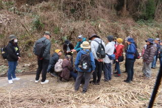 イノシシの罠は2か所ありましたが、入り口は閉じてあり、もちろん姿はありません。途中、カマキリの卵鞘をいくつも見まし た。「誰か持って帰って部屋の飾りにしませんか?といったら「キャー」という声が返ってきました。悲惨な結末が予想できる人ですね。