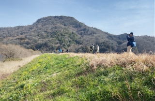 福岡池の堤防に上って 大山を眺めながら