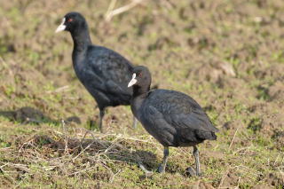 川から離れてオオバンが採食している畑に移動。近くで観察しても、慣れているのか全く気にしないで食事をしているのでじっくりと観察できた。オオバンの足、弁足を参加者全員が観察できたと思う。時間もかなり経っていたので集合場所へ引き返した。最初に観察した堤防近くの波消しブロックのウミネコの数が増えていたので、しばらく観察した会員もいた。