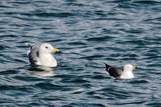 オオバンは「とろい」のでタカ類に狙われやすい ウミネコとセグロカモメのツーショット